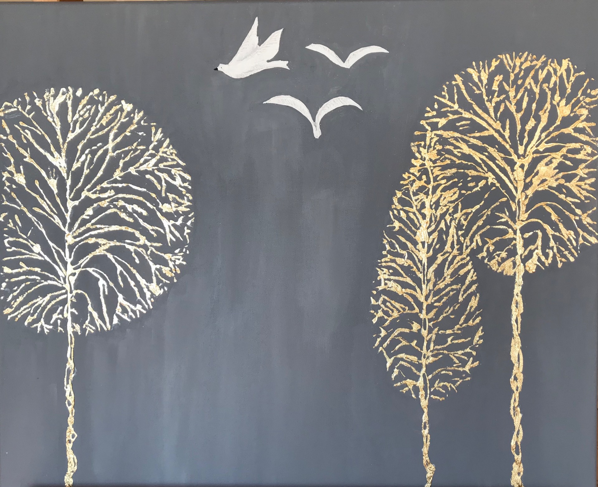 Materialer: akrylmaling, relieff og bladmetall 1200,-